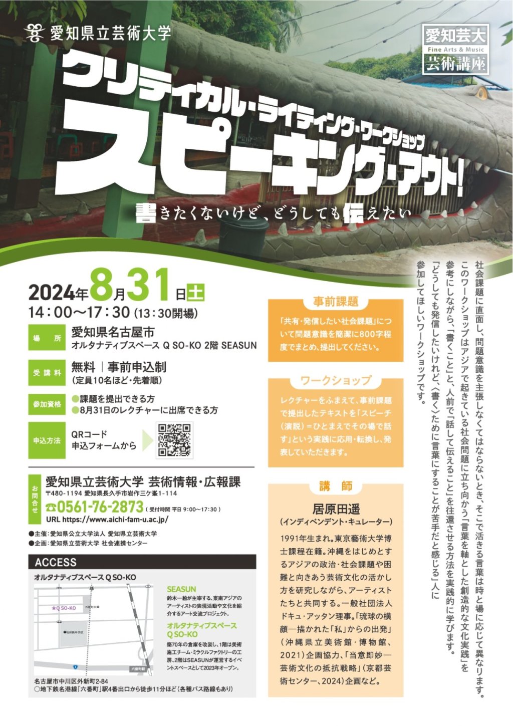 芸術講座 クリティカル・ライティング・ワークショップ 「スピーキング・アウト!書きたくないけど、どうしても伝えたい」