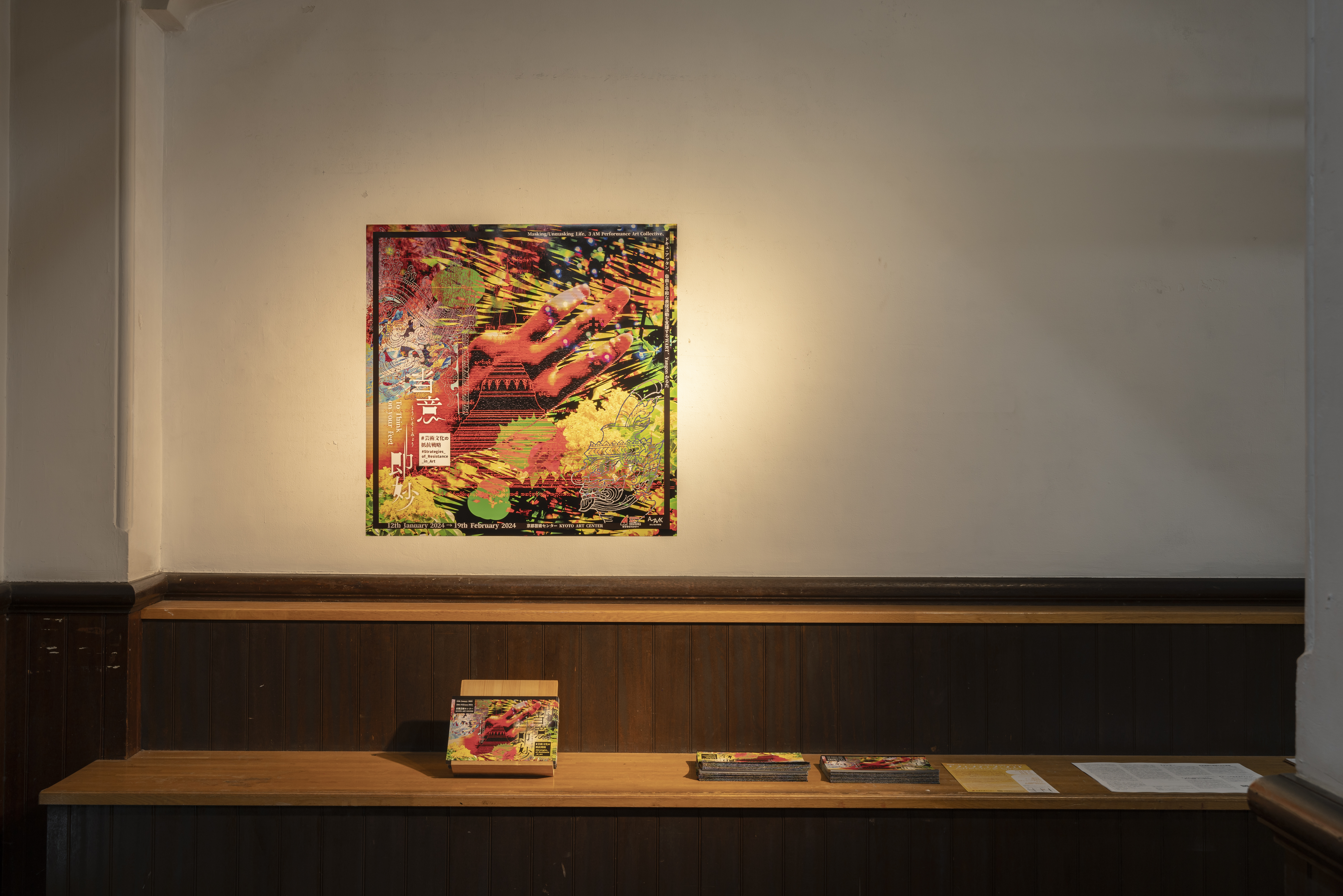 「当意即妙―芸術文化の抵抗戦略」展は、2021 年にミャンマーで起きたクーデターによってさまざまな困難を経験し、その状況を伝えるために、あるいはそこに生きる人々と共に、状況を変えようと努め、表現する5つの文化実践を紹介しています。