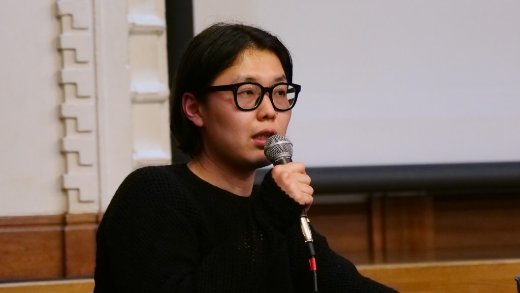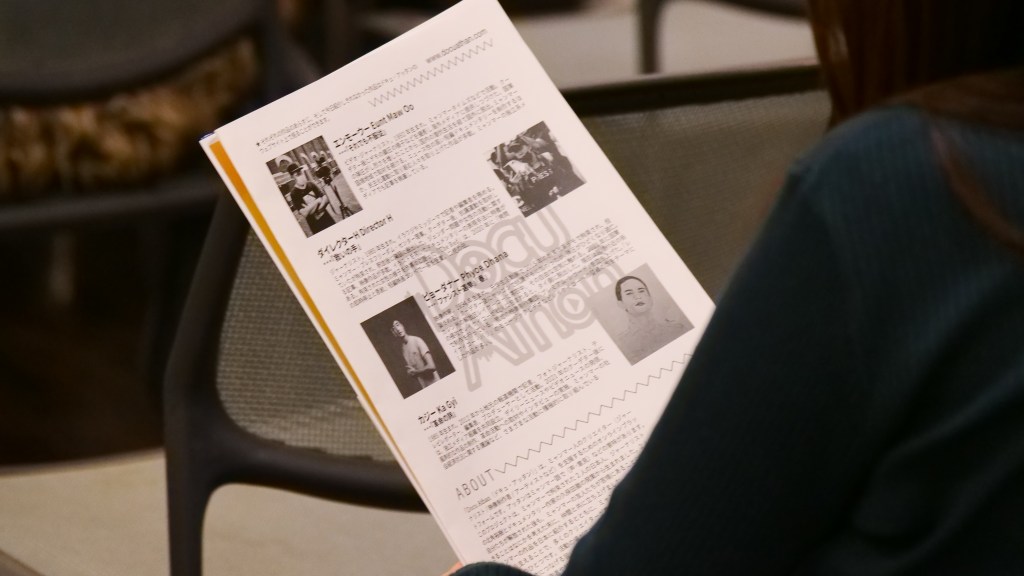 2024年1月20日は、参加プロジェクトのドキュ・アッタンによる「ドキュ・アッタンシアター #京都」と題したイベントを開催しました。イベントは2部制で、前半はミャンマーのクリエイターたちによる映像作品を紹介する特別上映会と、後半は企画者の居原田遥の進行のもと、ドキュ・アッタンに取り組む久保田徹氏、北角裕樹氏に加えて、ゲストにミュージシャンの篠田ミル氏を招いたトークを行いました。